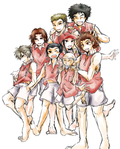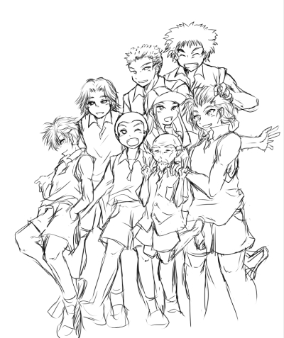 塗りだけ完成。あとフィルタかけたりテクスチャ貼ったり色調いじったりのいつもの。足元全体的に切っちゃったけど、サエさんと剣太郎の足は結構好きな感じに描けてたな…。