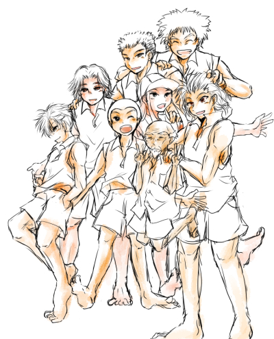 靴描きたくなきゃ脱がせればいいんじゃない? と閃いて全員裸足。と思いきやオジイだけビーサンのままですね。あとダビデが完全に異空間ですね見逃して!