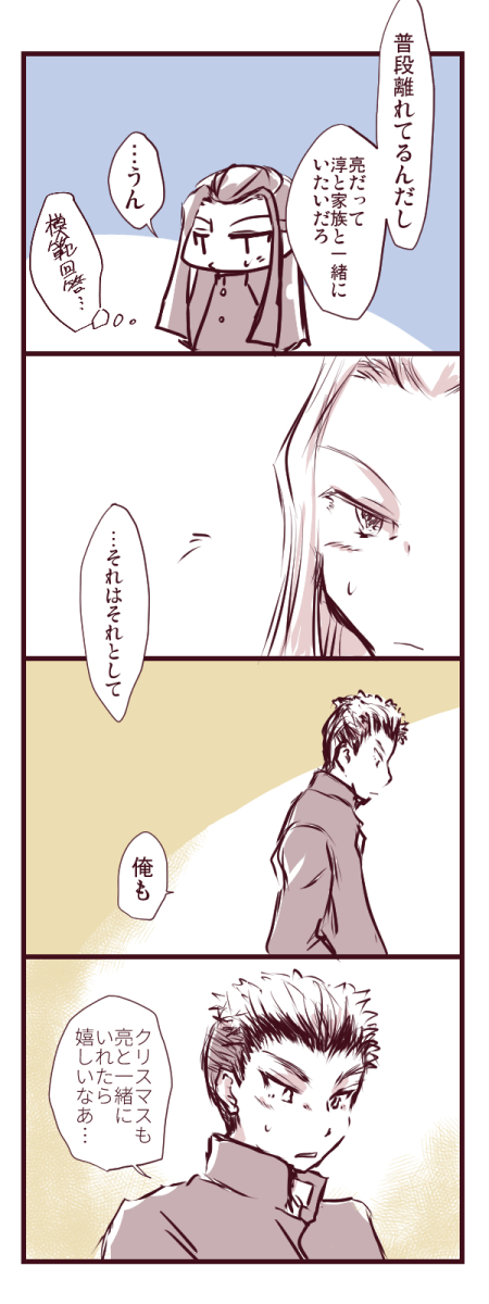 これ、でも時間的にクリスマス以前ですね。当日あたりの話はまた来年にでも。覚えてたら。大丈夫ですこのサイト来年のさとりょバレンタインは今年頭だけ描いて放置してたやつの続きをやるつもりなので。亮さんのチョコレートをなんとかして東京から千葉に戻さねばならない。ていうかバレンタイン漫画を3/13に出してくるこの面の皮。