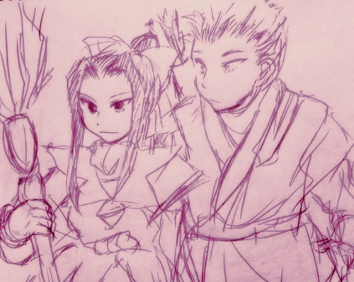 さとりょに別ジャンルのキャラ(チェスターとアーチェ)の衣装着せてみたらくがき