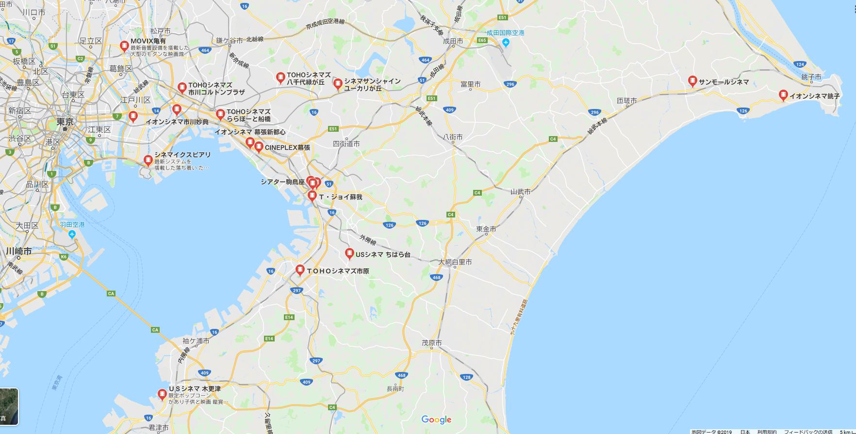 「映画館」で検索かけましたが、千葉県にはここより以南には映画館は無い模様。木更津も一館だけっぽい?