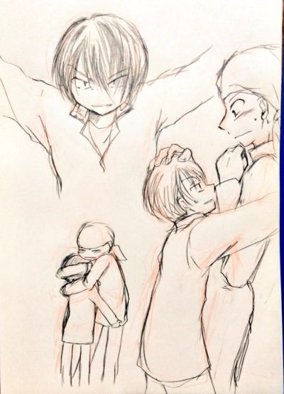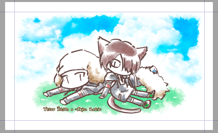 アタリ/下絵と線画。お祝い絵なので珍しく真面目にアタリと下絵で2回描いてる。