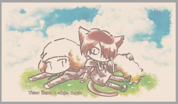 50%薄くしてトートの色かぶせるとこんな感じだべか…。カプ名ふだん書かないんだけどフォントいじってたら可愛いのがあったので使いました。でも調べたらwinのデフォで入ってるやつだったらしい、あれー?