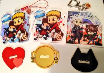 一番左はK9のオーロラアクキーです。比較兼透過確認みたいな。さとりょは鏡面燭台台座にピンクラメハートのチャーム付けました。かわいい。