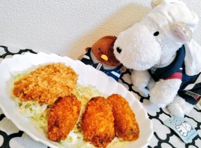 メンチカツとカキフライとカキフライの下のキャベツ。下にあればいいってもんではない(石田の苦手なもの:メンチカツの横のキャベツ)