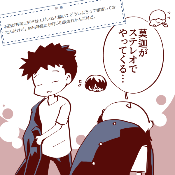 石田が神尾に好きな人がいると聞いてどうしようって相談してきたんだけど。昨日神尾にも同じ相談されたんだけど。
