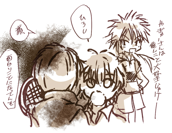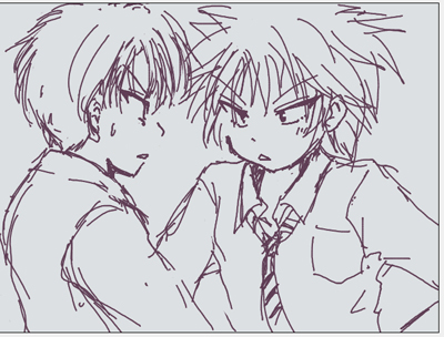 なんでじゃー、わくわくとよそさまのを眺めてる時はなんてきらきらしいカップリング…って思ってたのになんで自分で描くとこんなくそ地味なんだ。制服で描いたからか。