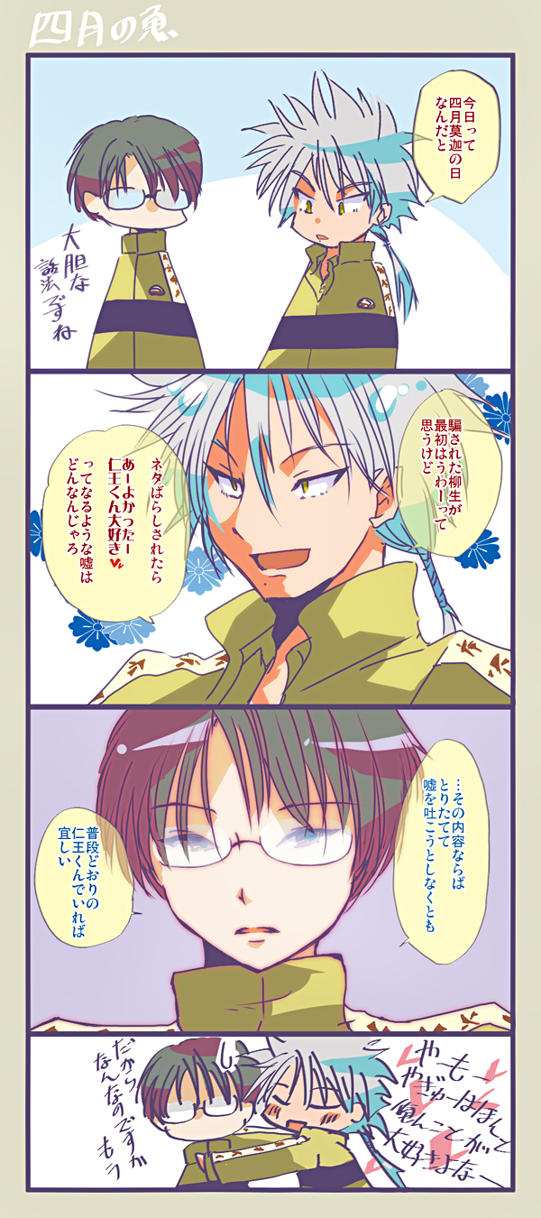 紳士と詐欺師の4/1。遅刻なうえに四月莫迦不発。自分で描くと仁王さんも柳生さんもあんまり賢くない….。仁王さんが相手だと感情の乱高下がますます激しそうで柳生さんは大変&大変楽しそう。