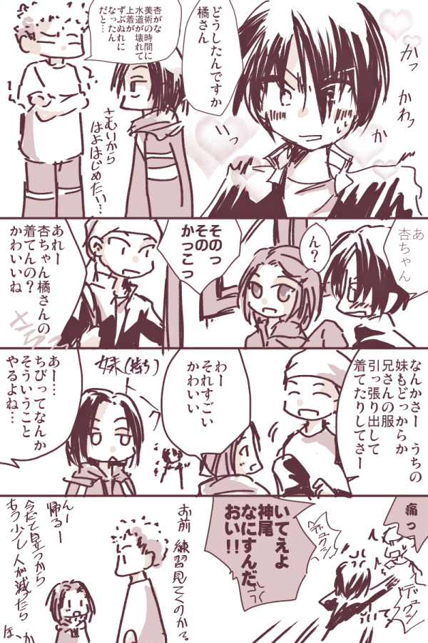 おまけの神尾→杏ちゃん漫画。他に妹持ちは…と調べようにも内村森桜井は家族構成載ってないでやんの…_(:3 」∠ )_ 森は一人っ子で桜井は兄がいて内村は下にいそうな気がする。妄想。