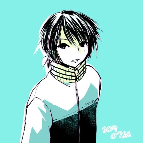 テニラビの前のイベントで観月さん(というか不二)の曲で何度も遊んでたので。背景は農家っぽく…って思ったけど実家で学校ジャージ着ないよなあ。しかもベースが白で汚れそうだし。ノープランで描くからだ。