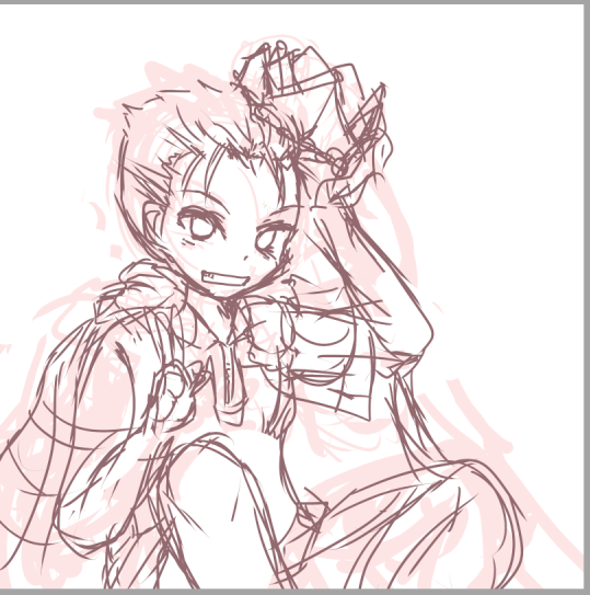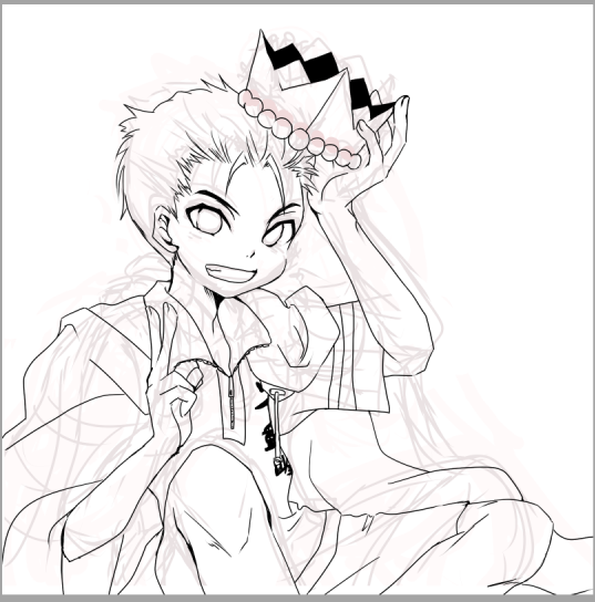 アタリ/下絵と線画。お祝い絵なので珍しく真面目にアタリと下絵で2回描いてる。