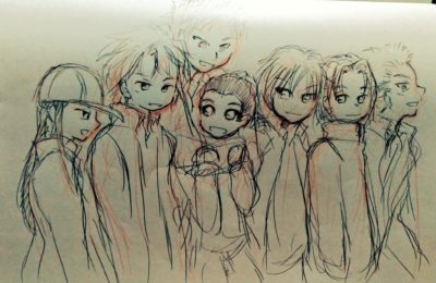 アタリ/下絵と線画。お祝い絵なので珍しく真面目にアタリと下絵で2回描いてる。