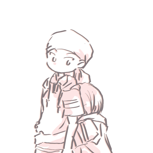 だるっとだらっとしたのが好きなのでつい長袖ばっかり描いてしまいますが半袖もかわいい。半袖でも黒くてフードあるとすごい暑そうですけどでも原作仕様のフード付きデザインが好き。