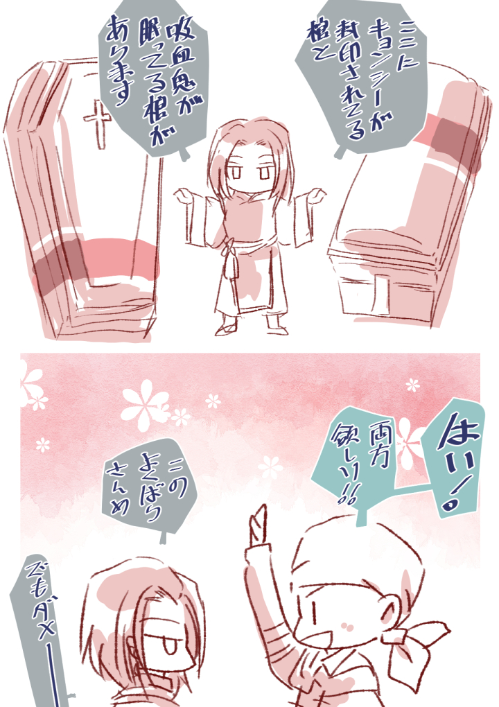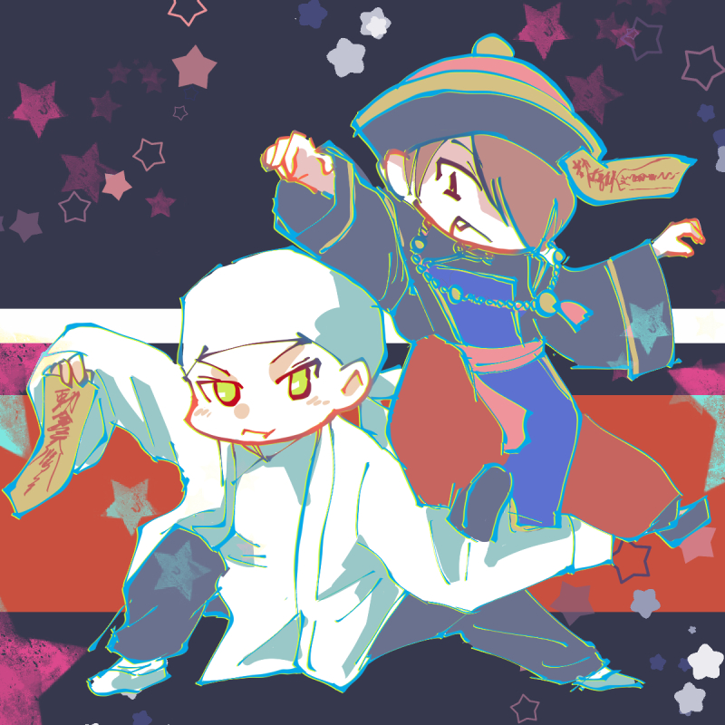 キョンシーなら袖がダラーっと長いレイレイ風なの可愛いけど、画力のせいで腕の長さ間違えてる人みたいになるな。