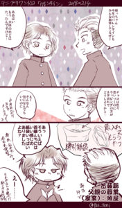 ふと思い立ってオフ原稿っぽい仕上げにしてみたけど、タカさんの頭のトーンってどのくらいの砂目だろう…これちょっと濃すぎたか荒すぎた。あと4コマ目不二の右腕書き忘れてる。