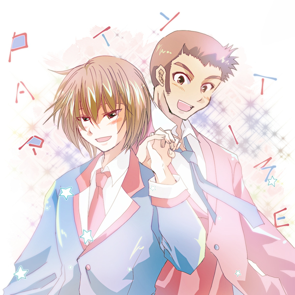 いや実際のとこはタカ不二は二人共背中向けてるからよくわからないんですけど(笑)、蝶ネクタイは大石があの角度で剣が見えないので菊丸とお揃いでそしたら不二は普通のネクタイなのかなーと。まあ夢です希望です。あ。タカさんの胸ポケット描くの忘れた。