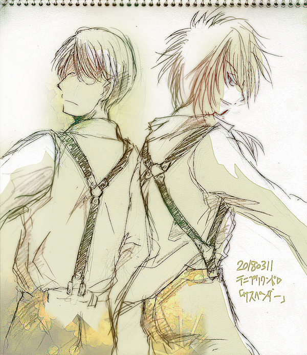 どうせ好きに決まってる…って感じのお二人。あ、28です。サスペンダーは高めのY字のもホルスター型のも良いです。仁王さん、それサスペンダー付けてる意味あんの?ってくらいシャツぐしゃぐしゃでてきとうなのとからしいと思います。好きだけど描かない(描けない)人たちは、単純に、技がさっぱりわからないからそもそものパーソナリティーがわからない…っていうのが…イリュージョンってつまりなに…?(まだそこか)